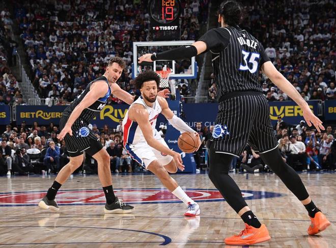 班凯罗在状元对决中,虽然得分逊色于坎宁安,但率领魔术首发五人全部得分上双,用团队攻势战胜活塞取得开门红。