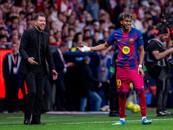 但场边的西蒙尼依然波澜不惊,至少在表面上,西蒙尼没有惊慌,可是他应该感到一些惊慌,因为在这之后,朗格莱又出现了一次失误,让右路的亚马尔终于成为了进攻的关键一员,但后点的费尔明没有将机会顶进去: