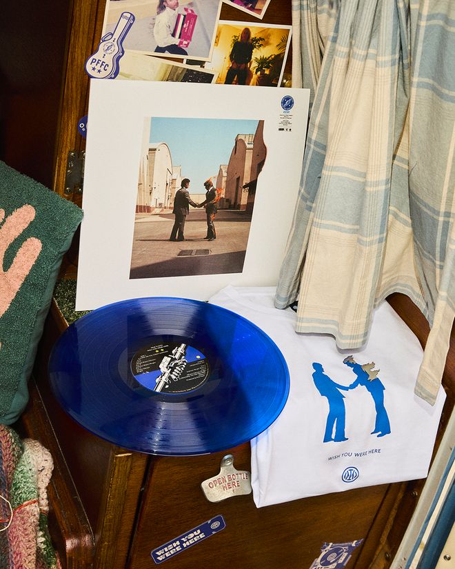 该系列的灵感源自摄影师金-戈特利布-沃克拍摄的经典PFFC合影,其中一大亮点是一款专属复古球衣,以现代视角重塑70年代复古美学,融合平克-弗洛伊德与国际米兰两大品牌标识。球衣正面沿用经典PFFC字母标识,还原历史照片中原款球衣样式;背部则印有专为俱乐部定制的《愿你在此》专辑50周年纪念徽章。衣袖点缀国米队徽,以及专辑封面传世经典的握手图案——平克-弗洛伊德最具代表性视觉符号。围巾、托特包、吉他拨片、鼓槌等周边单品,也均沿用同款设计元素。